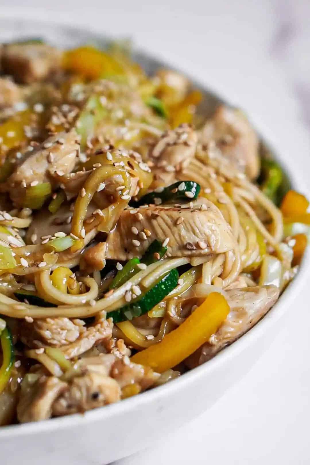 Another protein packed meal! By adding zoodles and cabbage to these Chicken Lo Mein noodles you get VOLUME, lots of nutritious volume.