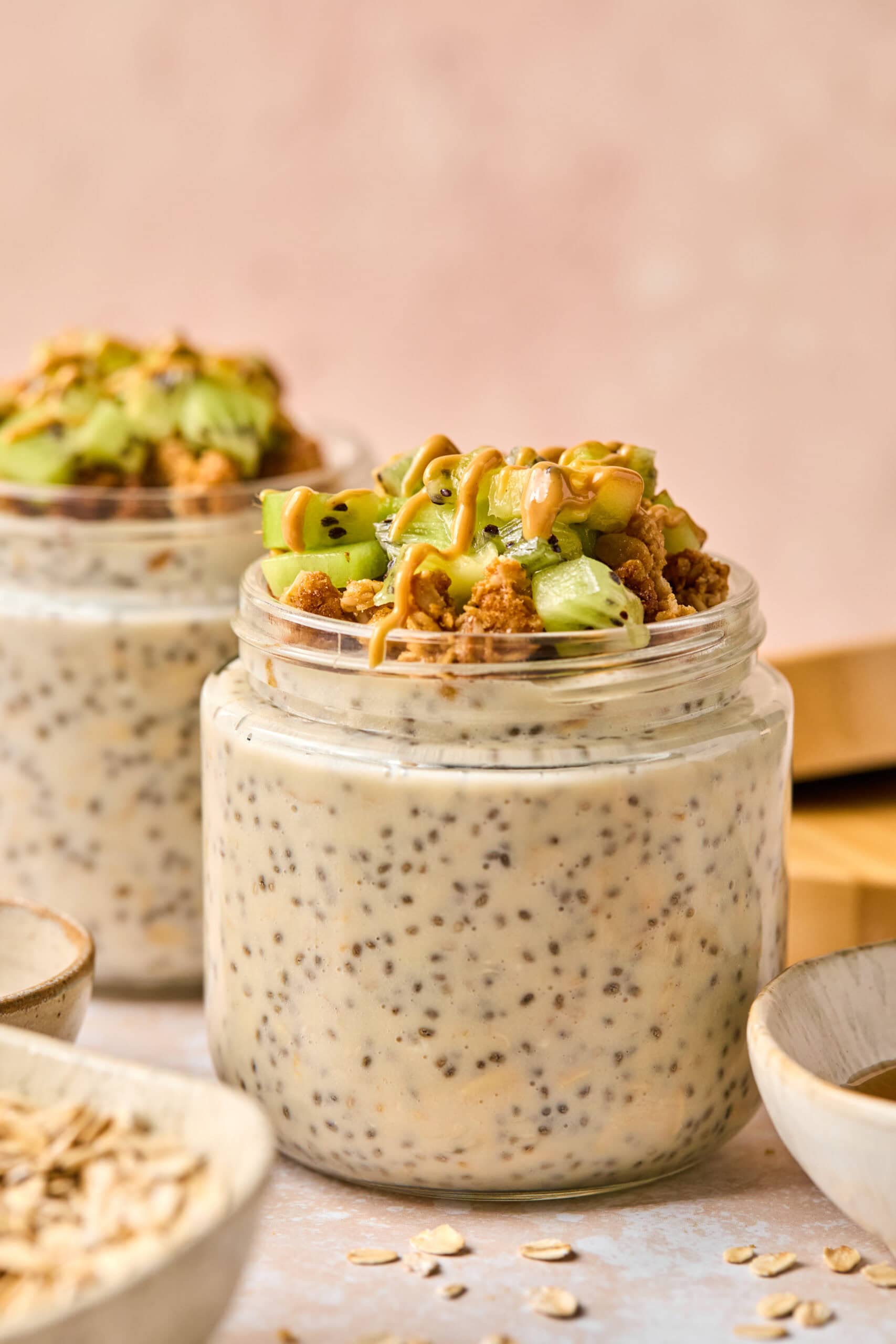 0 Add everything to a mason jar or sealable container, shake, and let sit in the refrigerator overnight. 1 When ready to enjoy remove from the fridge, stir and enjoy cold. 2 Top with your favorite toppings like fresh berries, chopped nuts, a little peanut butter or an extra dollop of Greek yogurt.View original recipe